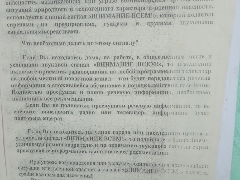 На стенде с информацией около подъезда жильцы дома обнаружили «памятку о порядке и адресах укрытия населения в коллективных средствах защиты». В ней содержится информация о том, что по улице Белорусской расположено «сооружение гражданской обороны», способное защитить брянцев от «осколочного действия обычных средств поражения».